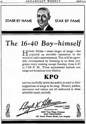 ![]() In the San Francisco Bay Area, it was station KRE in Berkeley that furnished a seven-day-a-week jazz menu, and kept jazz lovers up to date on the different artists. KRE was the station that first presented the Mills Brothers, who as a group of four brothers, sounded just like musical instruments. They were a national sensation, but we only heard them on the air. They never came to Northern California, but they did play in Los Angeles. Opportunities for blacks in radio were very limited in the 1920s and 1930s. The radio stations created their own celebrities. They had people who performed from the studio, and they didn't have to depend upon records. Most radio stations had a policy of not hiring black entertainers. The first black entertainer to get on a radio show in San Francisco was Henry Starr, a fine Oakland-born musician. He had left Oakland in the 1920s to work in Los Angeles and on the East Coast as a piano player, with some of the very good black entertainers of that period. He was gone for a long time before he came back home. Then he was hired as a star of a variety show known as the Edna Fischer Show on KFRC in San Francisco. It became very popular. Thousands of listeners turned their radios on every morning, and the names of the stars were well-known locally. Starr sang and accompanied himself on the piano. Rumors were that he was paid $100 every week, which was a lot of money in 1929 for anyone. Houses then sold for less than $5000. IN: Reflections on Black History, |